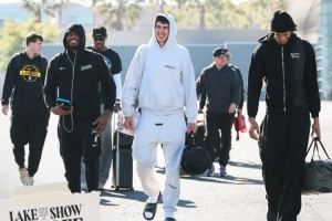 体育资讯10月29日讯 今日,湖人官推晒出一组球队出征客场的登机照。