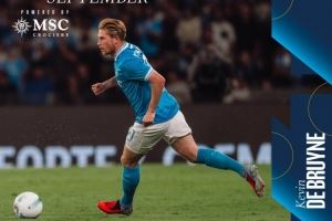 5场进2球!官方:德布劳内当选那不勒斯球迷票选的9月份最佳球员