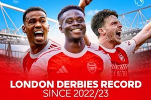 伦敦之王?自22/23赛季枪手伦敦德比87分断层领先,切尔西66分第2